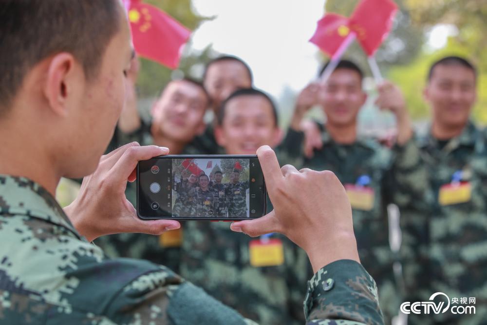 央视网消息:双节将至,节日氛围渐浓。近日,武警河北总队组织开展“祝福祖国,与国旗同框”系列活动,庆祝新中国成立71周年。活动期间,官兵们纷纷挥舞着鲜艳的国旗,脸上洋溢着热情的笑容,与国旗同框,用青春告白祖国,为祖国母亲献上最真诚的祝福。图为一名战士为战友记录下同框瞬间。(张丹)