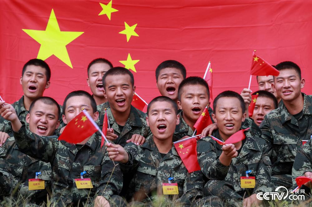 图为战士们挥动国旗,高呼“祖国万岁”。(张丹)
