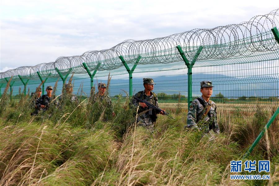 10月1日,黑龙江“东极哨所”官兵沿着黑瞎子岛上的国界线徒步巡逻。新华社发(张泉 摄)