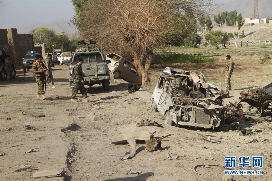 10月3日,在阿富汗楠格哈尔省辛瓦尔地区,安全部队成员查看袭击现场。 阿富汗政府官员3日证实,阿东部楠格哈尔省当天发生一起汽车炸弹袭击,造成15人死亡、42人受伤。 新华社发(赛义夫拉赫曼·萨菲 摄)