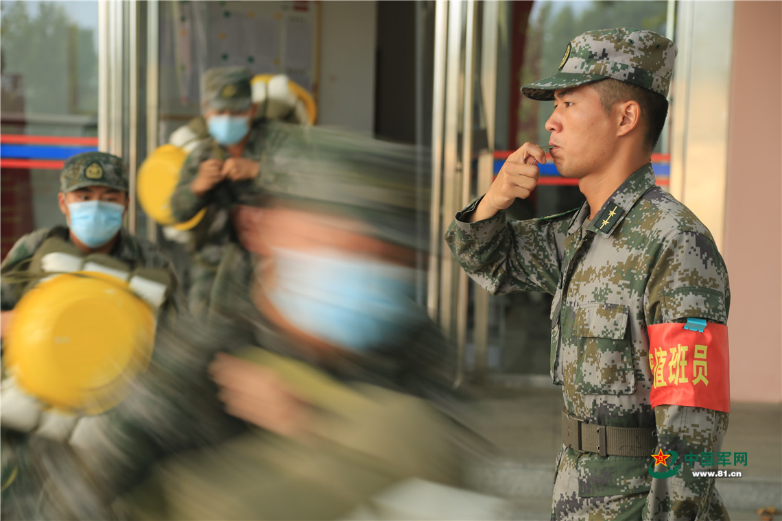 沉浸在睡梦中的新兵们闻声而动,各自抓起被褥打起背包,冲出营房,到达集合地点。