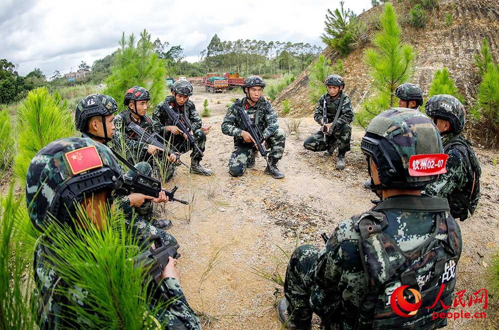 10月7日,武警广西总队钦州支队过节不忘战备训练,积极组织特战队员开展野外反恐演练。演练中,特战队员瞄准山地反恐作战中的短板弱项,在近似实战的环境下开展了山林地捕歼、汽车反劫持、山地攀登等课目训练,全面摔打磨砺特战队员的反恐打赢本领。(摄影报道:柴浩 胡散胜)