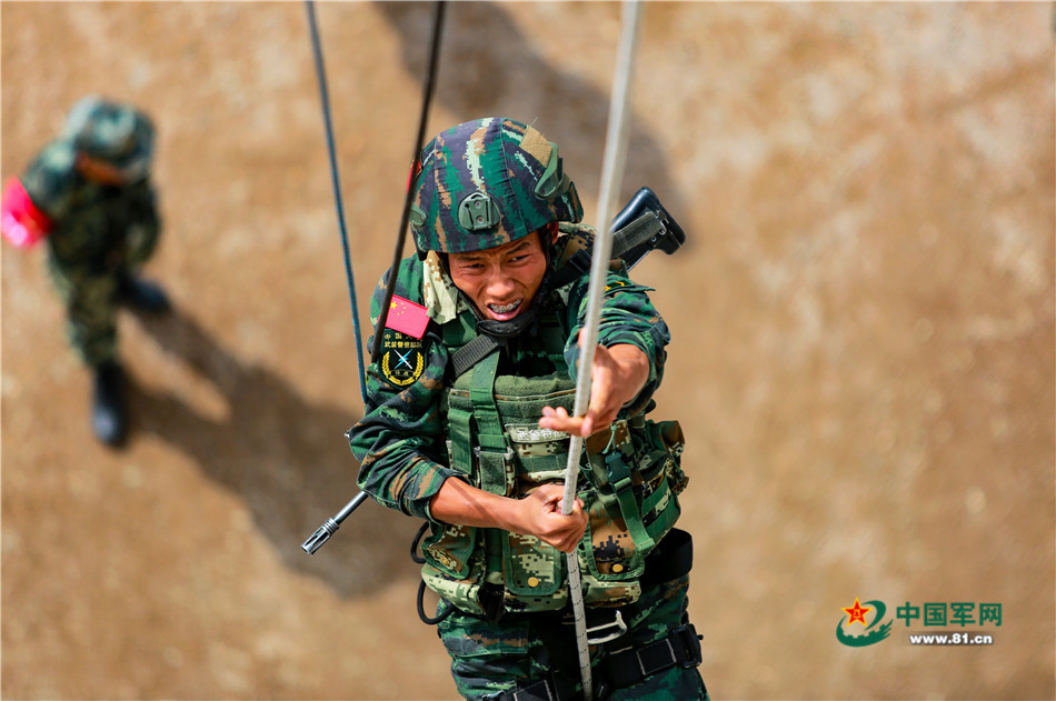 特战官兵进行18米抓绳上。侯崇慧摄