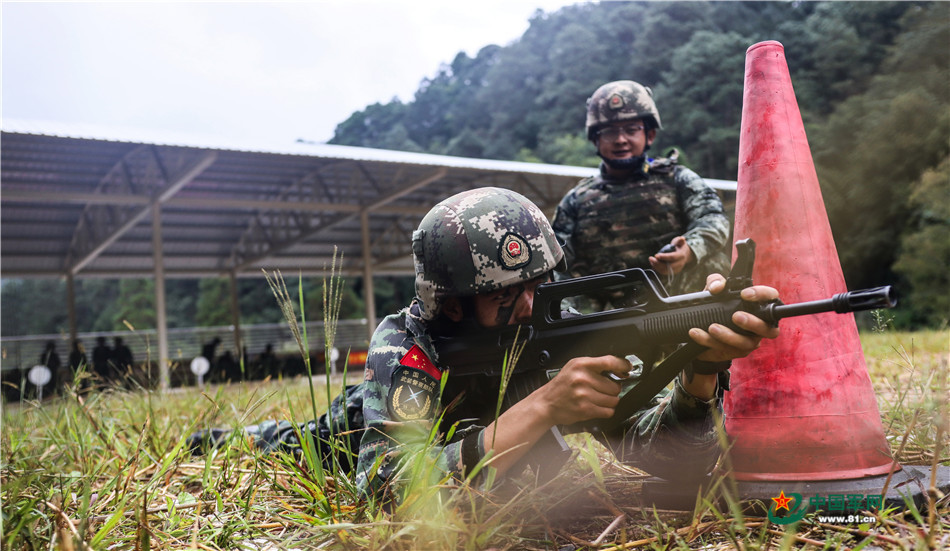 参赛队员卧倒射击。孔建辉 摄