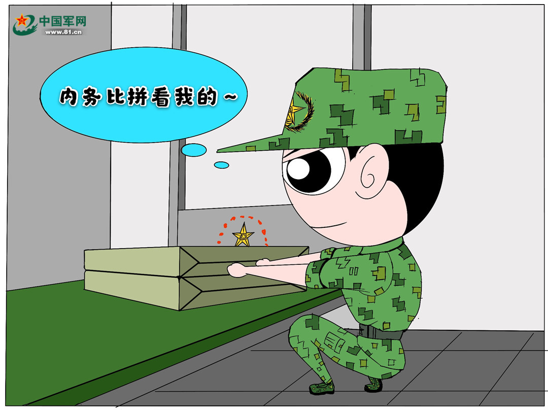 出门看队列,进门看内务。内务设置要求规范统一、安全卫生和符合战备,棱角分明的“豆腐块”也是必备技能之一。