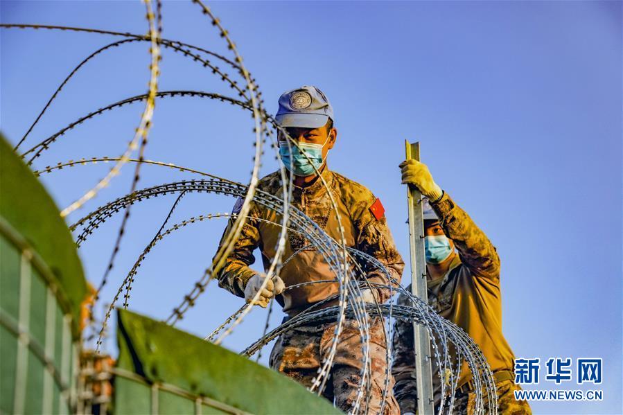 中国第16批赴苏丹达尔富尔维和工兵分队18日圆满完成联合国和非洲联盟驻达尔富尔联合特派团(联非达团)法希尔超级营地防御工事升级改造任务,此举有效提升了营地应对突发安全风险的防卫能力。 10月13日,中国维和工兵分队在法希尔超级营地拉挂防御铁丝网。 新华社发(徐绍钢摄)