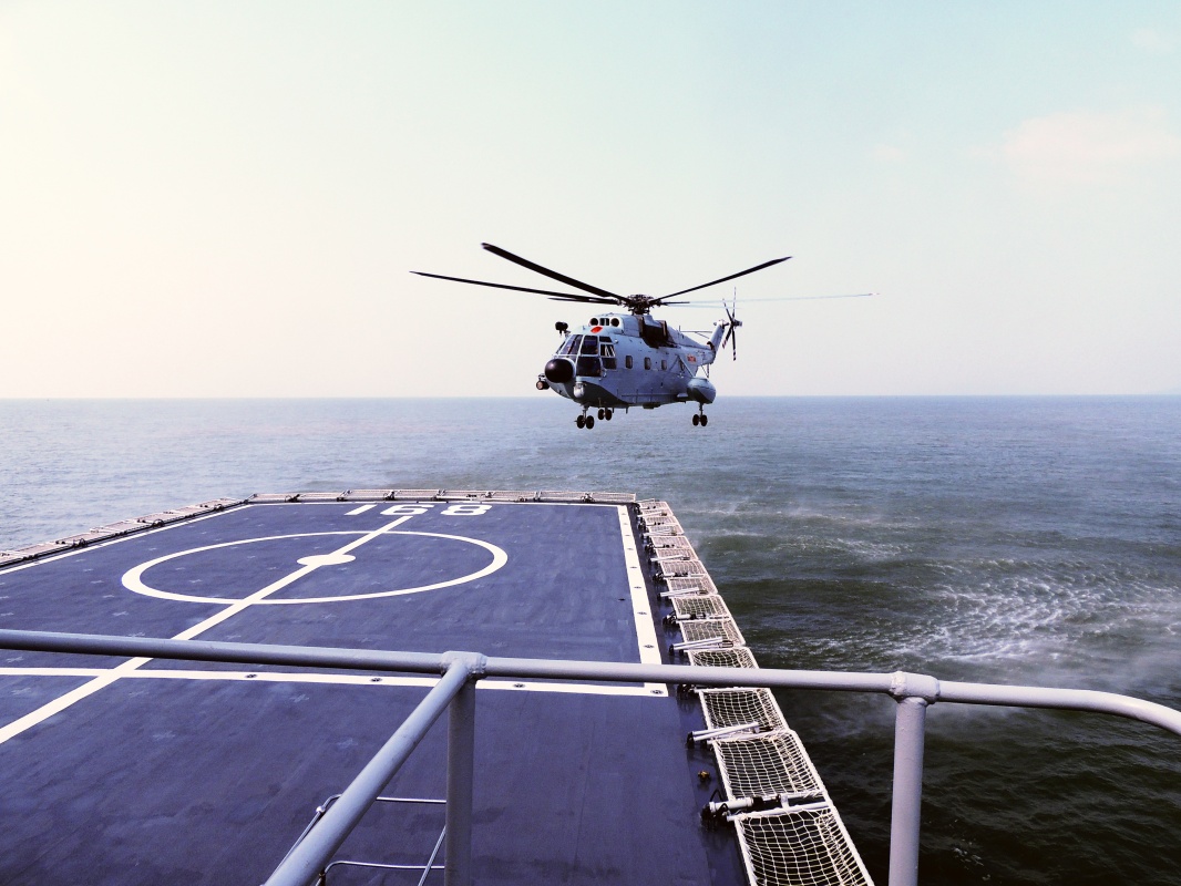 海军毕昇舰为海军某院校组织的海上直升机起降训练提供保障(2014年8月13日摄)。新华社发(孙昊 摄)