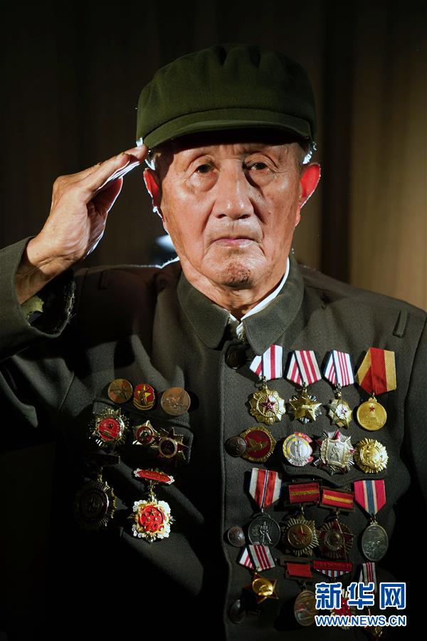 在黑龙江省牡丹江市拍摄的志愿军老战士庞兴海(9月23日摄)。 庞兴海,1930年生,山东商河人,1952年随部队入朝。1953年,在石砚洞北山反击战中,庞兴海因头部重伤昏迷被送往后方医院,战友没有找到他,以为他牺牲了,向国内发回牺牲通知,他的名字还被刻在烈士纪念碑上。1958年,回到家乡的庞兴海才知道自己成了“活烈士”。庞兴海在抗美援朝战争中荣立二等功1次、三等功1次。 新华社记者 王松 摄