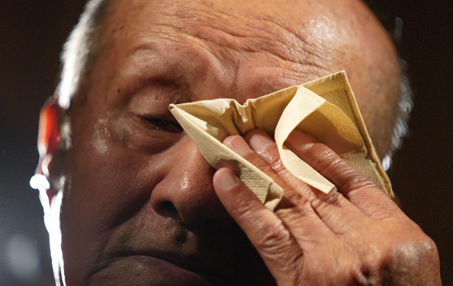 在黑龙江省牡丹江市,志愿军老战士庞兴海在回忆战争时流下眼泪(9月23日摄)。 庞兴海,1930年生,山东商河人,1952年随部队入朝。1953年,在石砚洞北山反击战中,庞兴海因头部重伤昏迷被送往后方医院,战友没有找到他,以为他牺牲了,向国内发回牺牲通知,他的名字还被刻在烈士纪念碑上。1958年,回到家乡的庞兴海才知道自己成了“活烈士”。庞兴海在抗美援朝战争中荣立二等功1次、三等功1次。 新华社记者 王松 摄