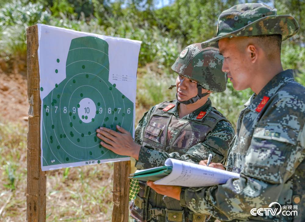 图为官兵在确认射击成绩。(崔程 徐世立 摄影报道)