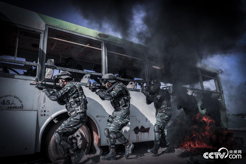 图为特战队员正在进行5人小组协作训练。(张文、陈戈)
