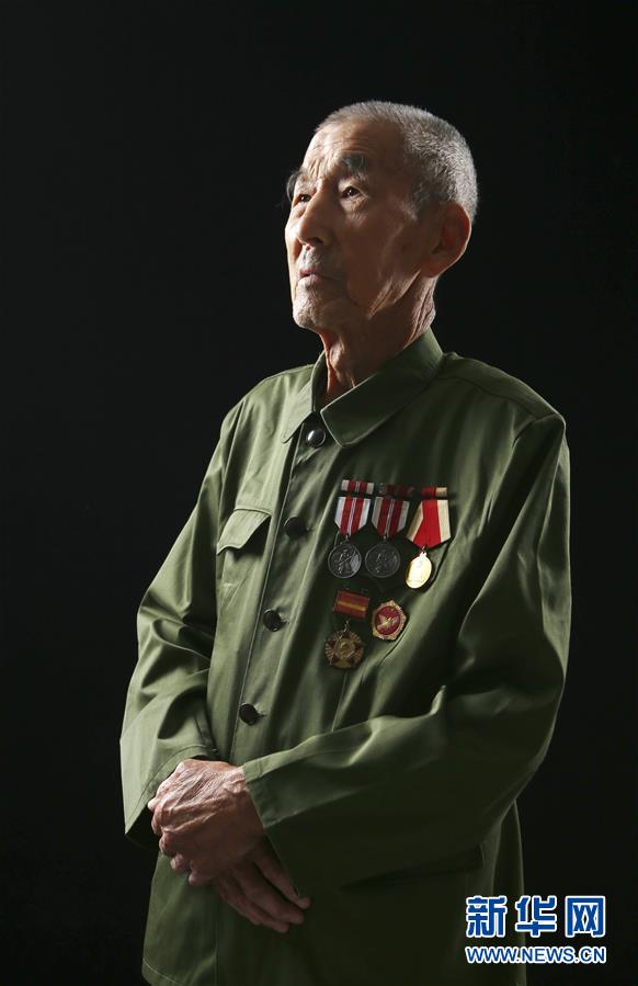 许万贺,1930年生,河北遵化人,1950年随部队入朝。为保护重要战略物资,许万贺和战友不顾敌机在头顶盘旋轰炸,扑向火海奋勇守护。在朝鲜的5年间,许万贺3次负伤,荣立二等功、三等功各1次。 新华社记者 杨世尧 摄