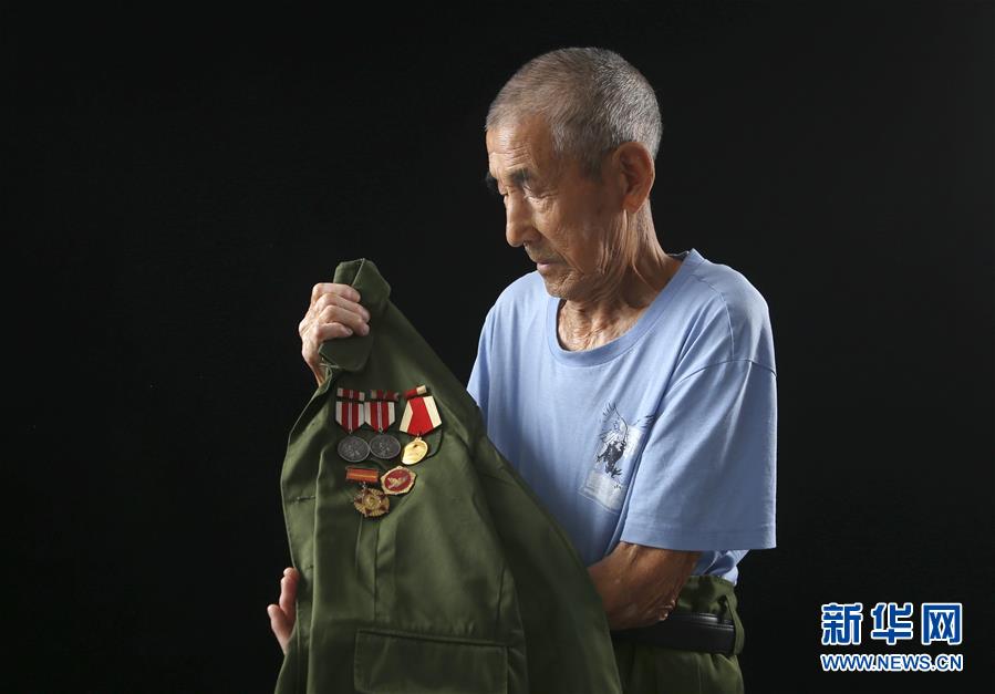 在河北省遵化市,志愿军老战士许万贺回忆战争往事(10月2日摄)。新华社记者 杨世尧 摄