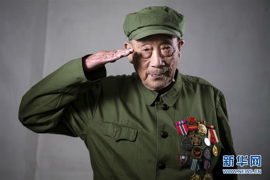 在宁夏石嘴山市拍摄的志愿军老战士陈长发(9月24日摄)。 陈长发,1929年生,浙江兰溪人,1953年随部队入朝。在朝鲜期间,陈长发先是跟随部队打坑道,维护公路畅通。1953年《朝鲜停战协定》签订后,陈长发负责三八线一带规定区域内的武装巡逻。陈长发荣立三等功。 新华社记者 王鹏 摄