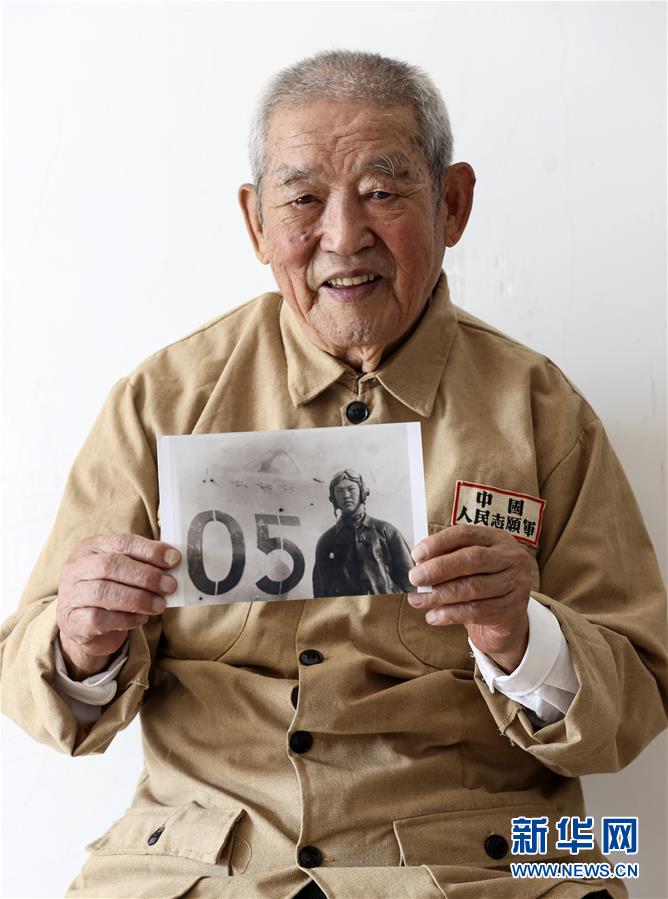 在辽宁省大连市,志愿军老战士那启明手持自己年轻时的照片(10月18日摄)。 那启明,1929年生,辽宁凤城人,锡伯族。朝鲜战争爆发后,只在航校学了大半年飞行的那启明于1952年3月入朝参战。1952年6月,那启明首开其所在师入朝参战空战纪录。在朝鲜战场上,那启明击落敌机3架,荣立二等功2次。 新华社记者 潘昱龙 摄