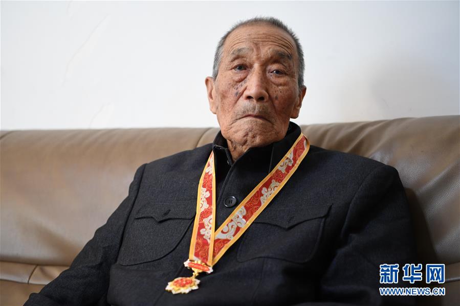 在河北省保定市拍摄的志愿军老战士王应邦(10月12日摄)。 王应邦,1927年生,山西灵丘人,1951随部队入朝。在铁原阻击战中,王应邦在坑道中的指挥所维护通信线路,负伤后忍着剧痛继续抢修,完毕后才对伤口进行简单包扎,这次负伤导致他在手术后失去两根肋骨和半块肺叶。1952年,王应邦荣立一等功。 新华社记者 牟宇 摄