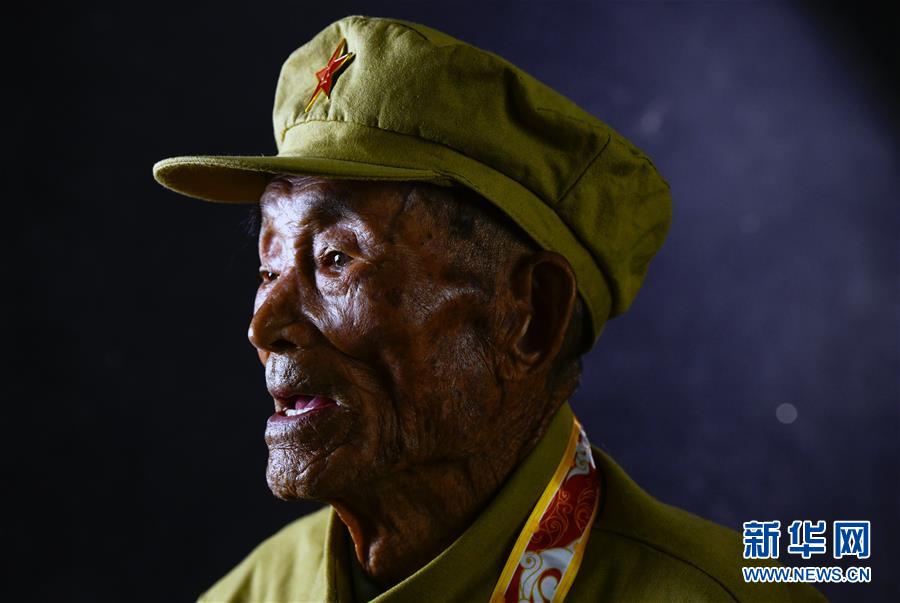 在天津市拍摄的志愿军老战士杨树柏(9月23日摄)。 杨树柏,1925年生,天津人,1950年随部队入朝。杨树柏在横城阻击战德高山战斗中,一人掩护全排安全转移,还救回一个伤员、带回几件武器,被战友称赞为“孤胆英雄”,被荣记大功一次。 新华社发(孙凡越 摄)