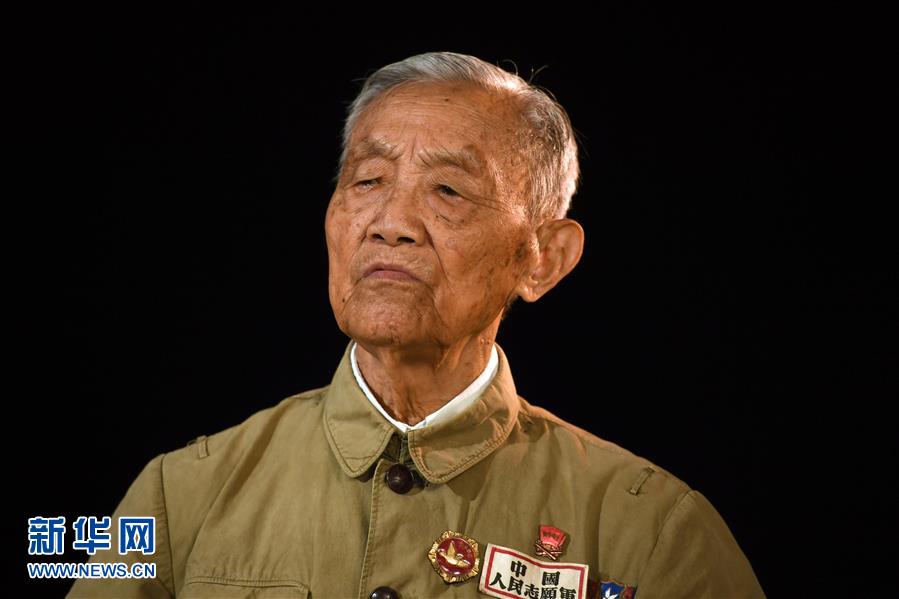 在湖南省岳阳市拍摄的志愿军老战士朱再保(10月2日摄)。 朱再保,1928年生,湖南岳阳人,1951年参加抗美援朝战争。1953年7月,金城战役打响,朱再保右膝盖受伤,他带伤坚持参战15天,顺利完成任务并火线入党。 新华社记者 薛宇舸 摄
