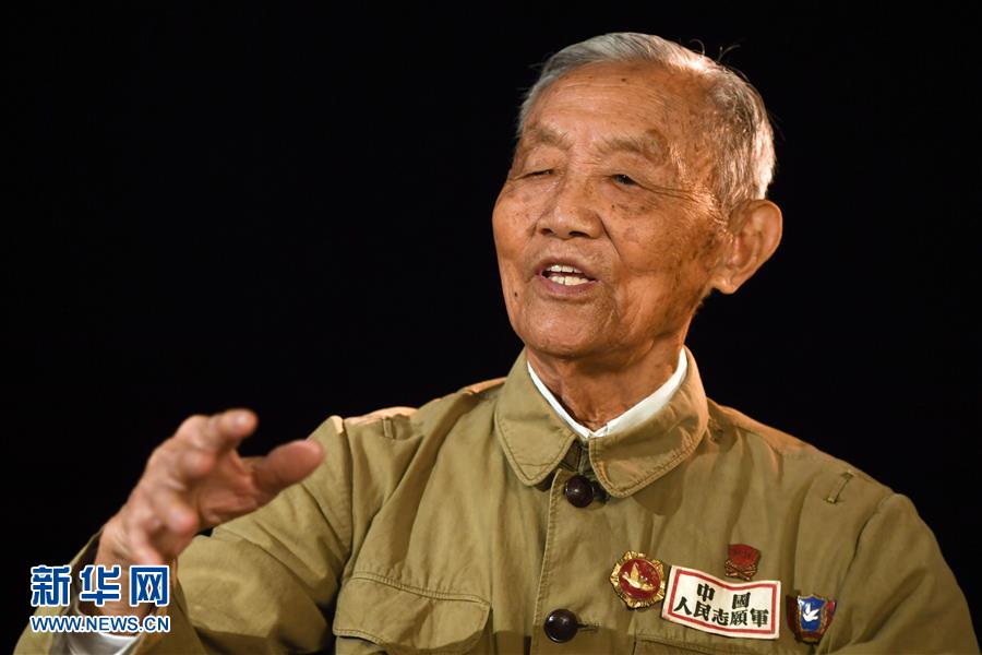 在湖南省岳阳市拍摄的志愿军老战士朱再保(10月2日摄)。 朱再保,1928年生,湖南岳阳人,1951年参加抗美援朝战争。1953年7月,金城战役打响,朱再保右膝盖受伤,他带伤坚持参战15天,顺利完成任务并火线入党。 新华社记者 薛宇舸 摄