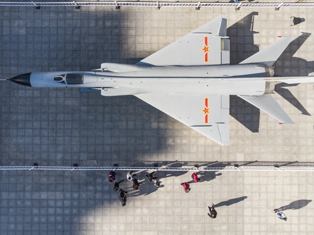 10月24日,学生在哈尔滨华德学院国防教育广场退役装备展示区参观战斗机(无人机照片)。新华社发(张涛摄)