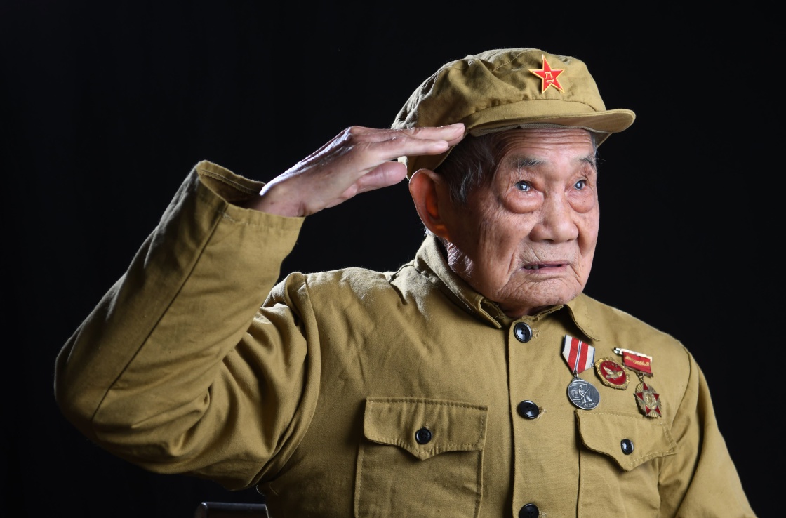 在湖北省荆州市拍摄的志愿军老战士易金荣(10月5日摄)。新华社记者 程敏 摄