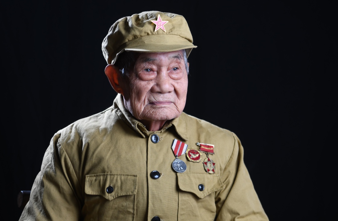 在湖北省荆州市拍摄的志愿军老战士易金荣(10月5日摄)。新华社记者 程敏 摄