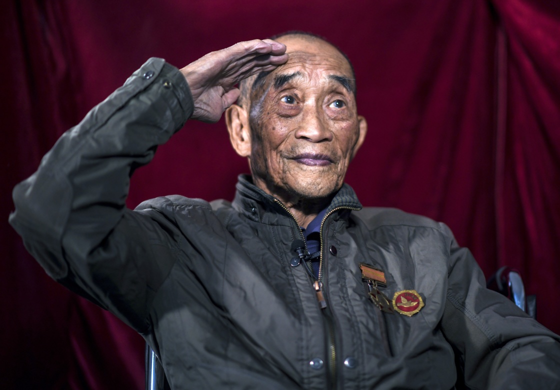 在新疆生产建设兵团第二师铁门关市拍摄的志愿军老战士白祖华(9月28日摄)。新华社记者 王菲 摄