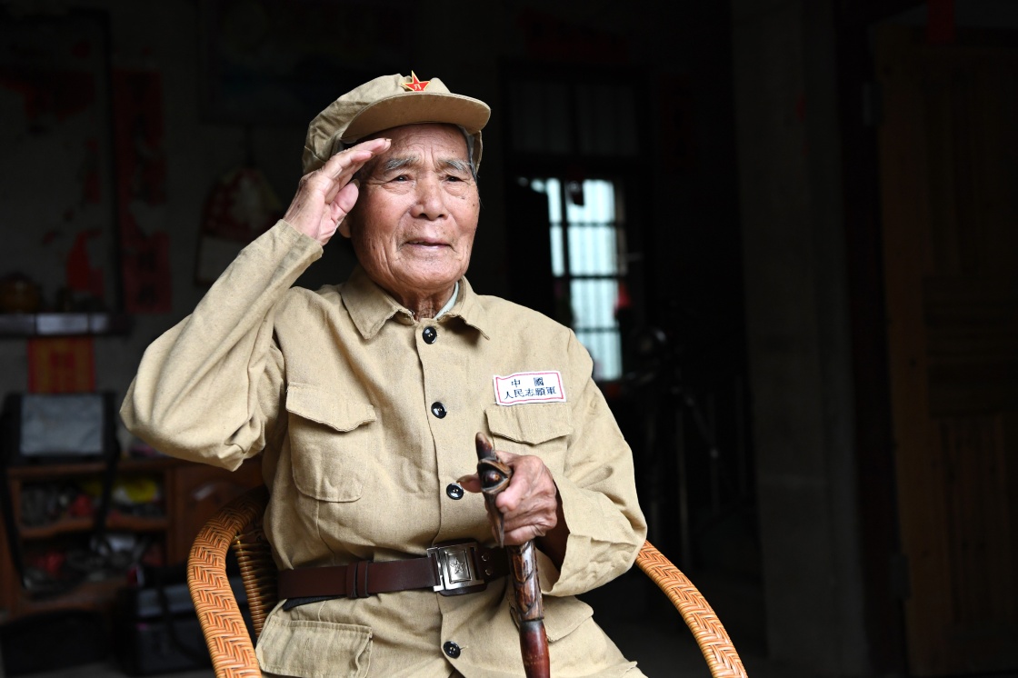 在广西平乐县拍摄的志愿军老战士贲国宣(9月24日摄)。新华社记者 周华 摄