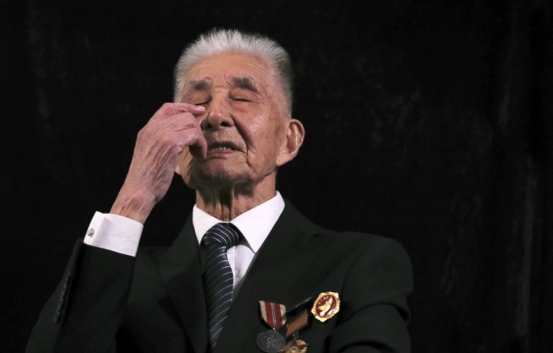 在上海市,志愿军老战士王贯三回忆战争往事(10月13日摄)。新华社记者 方喆 摄
