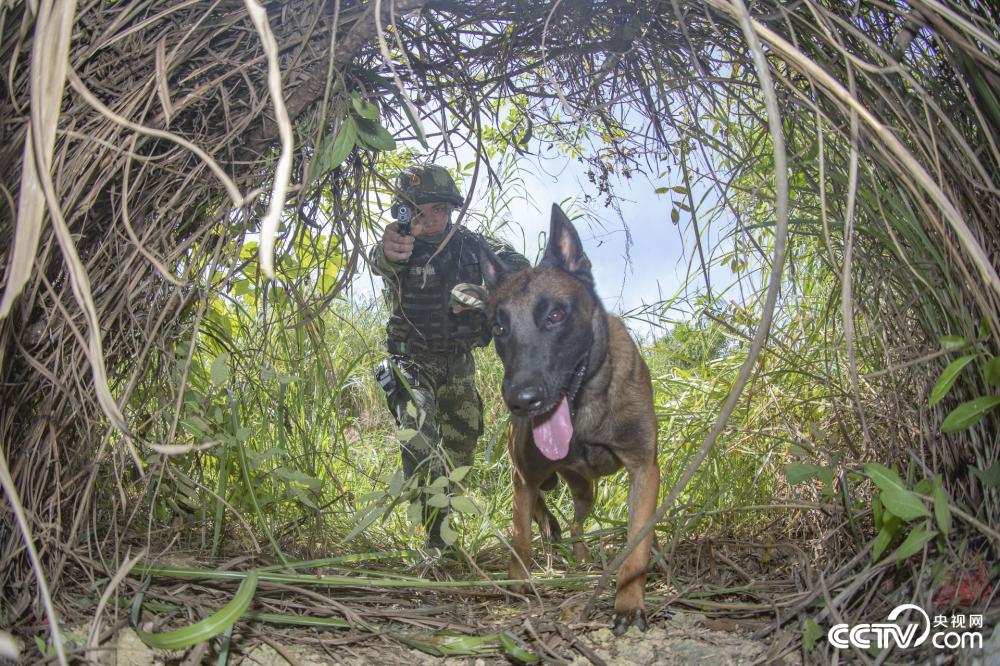 图为武警官兵携军犬追踪目标。(杨肖飞、徐世立、余海洋 摄影报道)