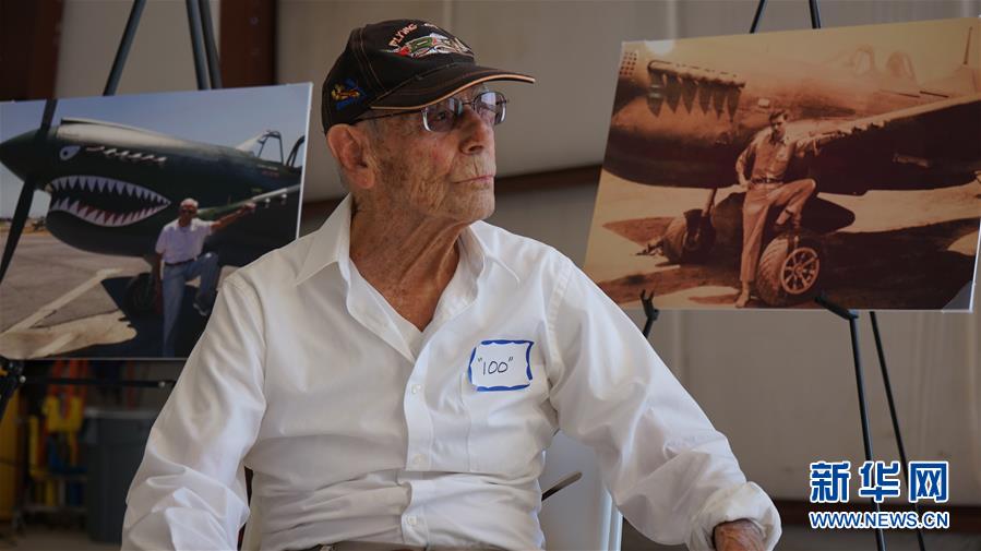 10月30日,在美国加利福尼亚州圣路易斯-奥比斯波,莫耶坐在自己的照片前。 76年前,哈里·莫耶驾驶P-40战机和“飞虎队”战友们一道在中国上空扫荡日寇飞机。30日,期颐之年的莫耶驾驶一架民用小型飞机在美国加利福尼亚州圣路易斯-奥比斯波机场再次冲上蓝天,庆祝自己的百岁生日。 新华社发(曾慧摄)