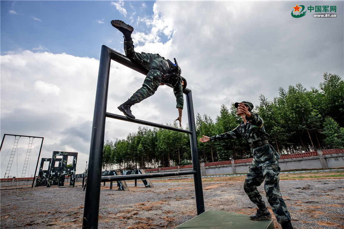 2014年,在新兵连以优异成绩“毕业”的商士秀下队后,被分到了当时的机动中队机动排。第一次参加中队全副武装5公里越野考核,一趟下来,他只能在一旁上气不接下气地大口喘着粗气,而一旁身穿防弹衣“全副武装到牙齿”的班长却还“谈笑风生”,轻松地劈腿拉筋。
