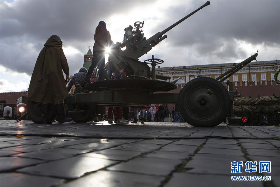 11月7日,在俄罗斯首都莫斯科,人们在红场参观以纪念1941年苏联红场阅兵式为主题的露天展览。 当日,俄罗斯在红场举行露天展览,纪念1941年苏联红场阅兵式。 新华社发(亚历山大摄)