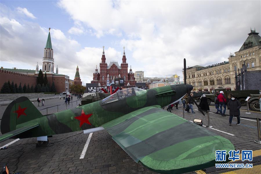 11月7日,在俄罗斯首都莫斯科,人们在红场参观以纪念1941年苏联红场阅兵式为主题的露天展览。 当日,俄罗斯在红场举行露天展览,纪念1941年苏联红场阅兵式。 新华社发(亚历山大摄)