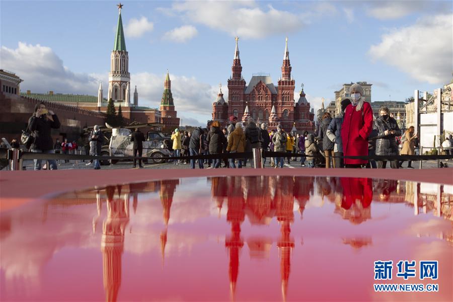 11月7日,在俄罗斯首都莫斯科,人们在红场参观以纪念1941年苏联红场阅兵式为主题的露天展览。 当日,俄罗斯在红场举行露天展览,纪念1941年苏联红场阅兵式。 新华社发(亚历山大摄)
