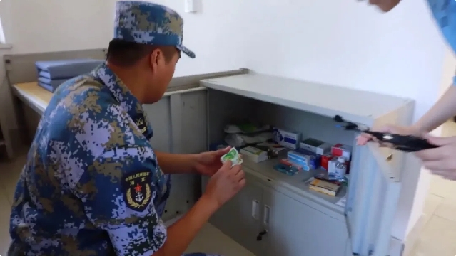 王绍滕介绍:“海边的虫子特别厉害,咬一口两个星期都落不下去,我们的药箱里备着很多防蚊虫、防蛇药品,感冒药、消炎药、防中暑的药也很多。”