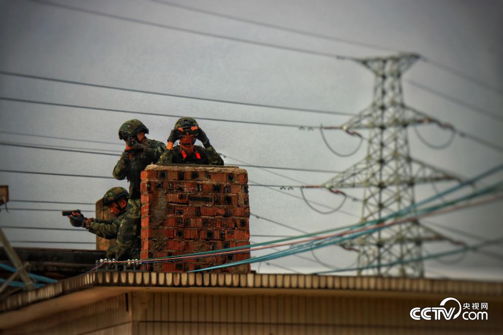 据了解,此次演练结合驻地地形地貌,开展潜伏伪装、居民地搜索、追击、捕歼等十余个课目,丰富战术战法,磨砺官兵的顽强的战斗精神,全面锤炼官兵在复杂环境下的应急处置及小组协同作战能力。图为小组利用高地进行查。(陈登科、闲定芳)