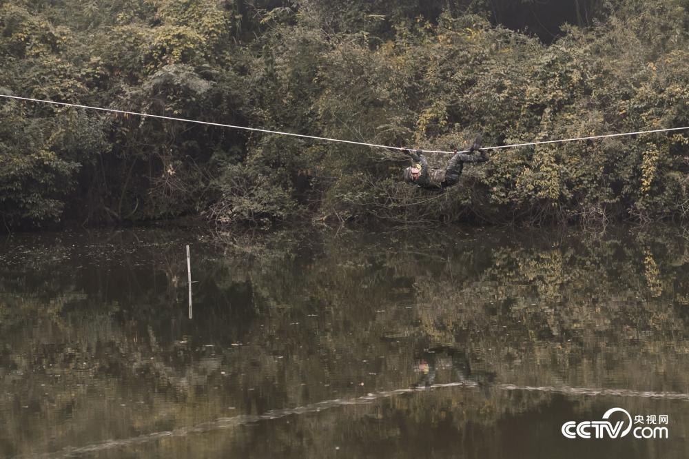 图为特战一小队利用绳索快速渡河。(蒙勇高)