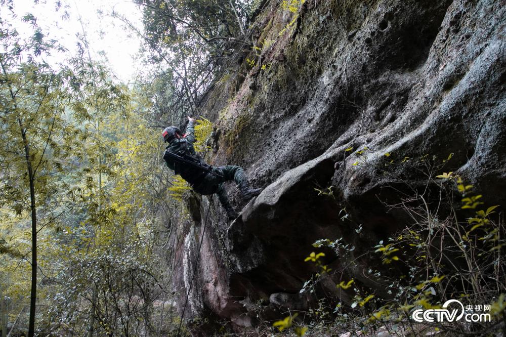 图为特战一小队选择攀爬悬崖渗入敌后。(蒙勇高)