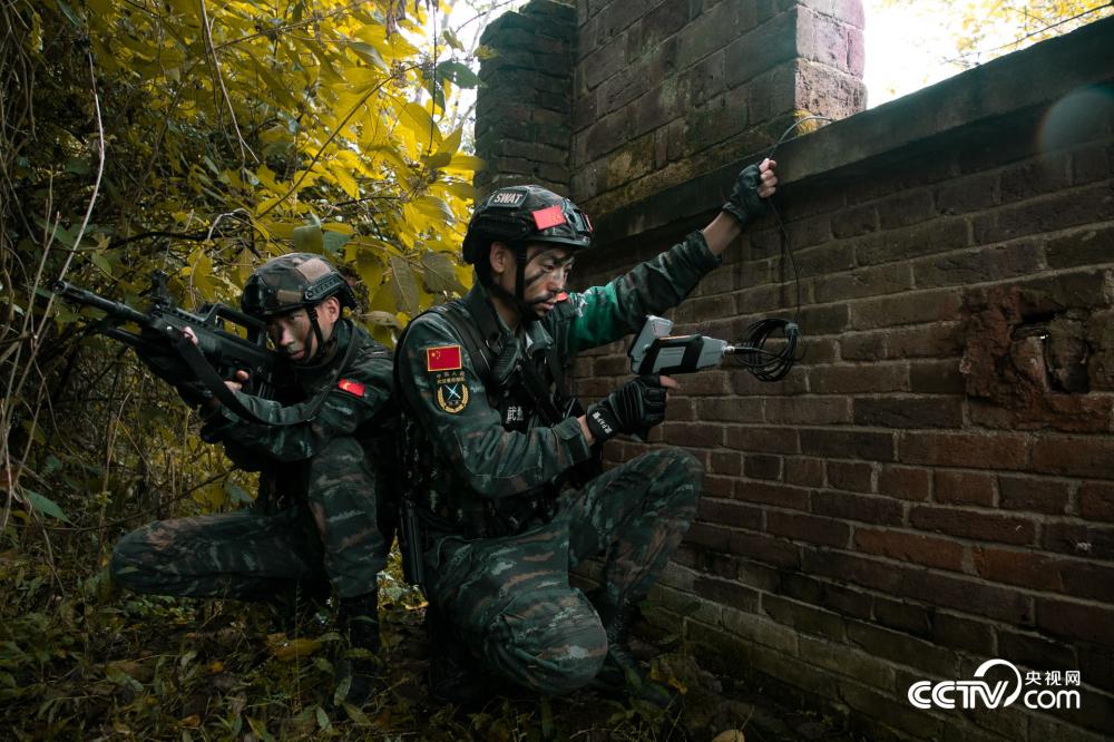 图为特战一小队利用软管窥察房屋环境。(蒙勇高)
