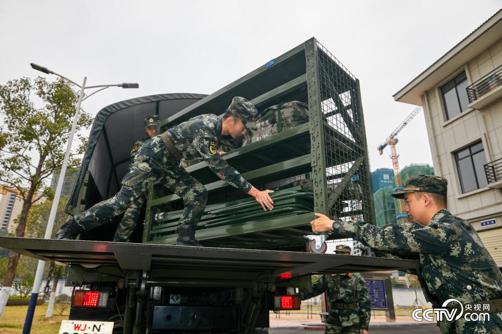 图为装备物资快速装车。(张宸硕、陈登科)