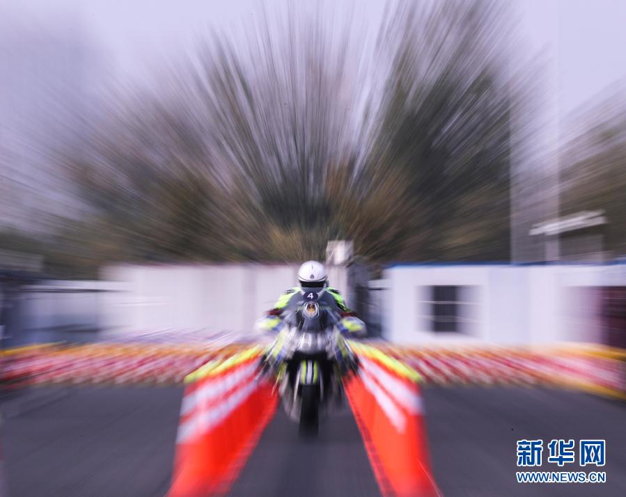 11月13日,选手在摩托车警务驾驶技能竞赛中比武。