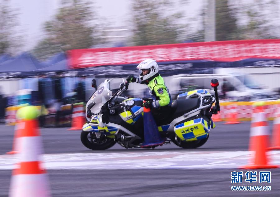 11月13日,选手在摩托车警务驾驶技能竞赛中比武。新华社记者 殷刚 摄