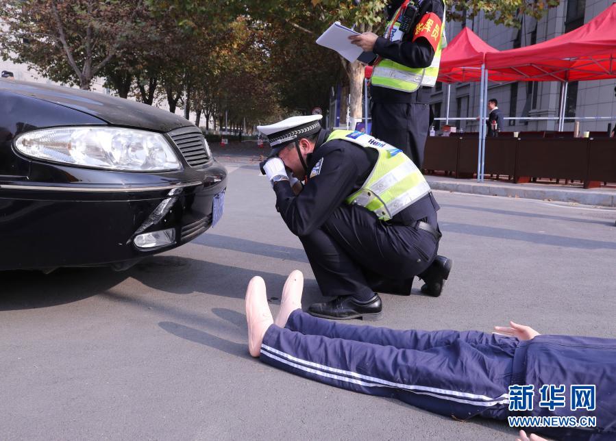 11月12日,选手在交通事故现场勘查竞赛中比武。新华社记者 殷刚 摄