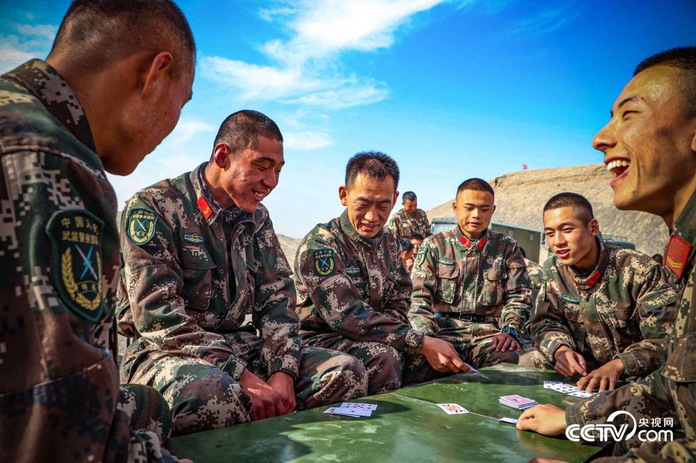 刀在石上磨,兵在苦中练。实训砺精兵,大漠铸忠诚。图为官兵同乐。(撰稿/摄影:阿迪江 刘磊 刘鑫 任海朋)