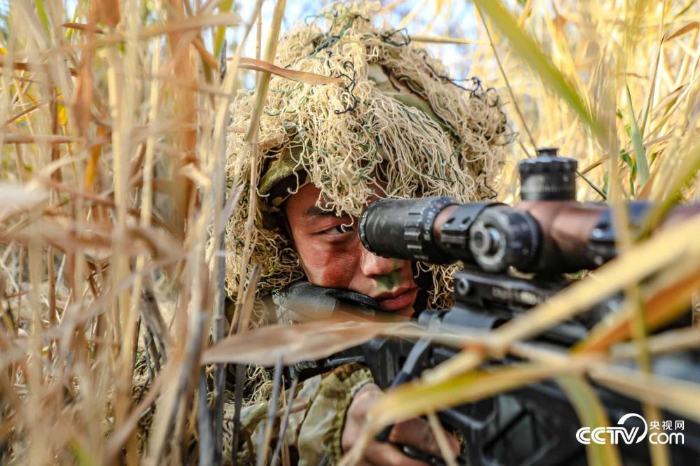 图为狙击手隐蔽自身正在进行潜伏狙击。