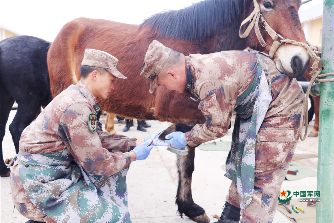 环视现场,敲打蹄铁声叮当作响,清蹄底、净蹄壁、涂蹄油、修蹄形、换蹄铁……蹄油要包裹全蹄、蹄铁要左右同高、蹄壁要锉钝下缘,官兵把每个要求都做得丝毫不差。通过对马蹄的保养增强了蹄角质韧性,防止了蹄裂、蹄壁缺损和蹄叉腐烂。