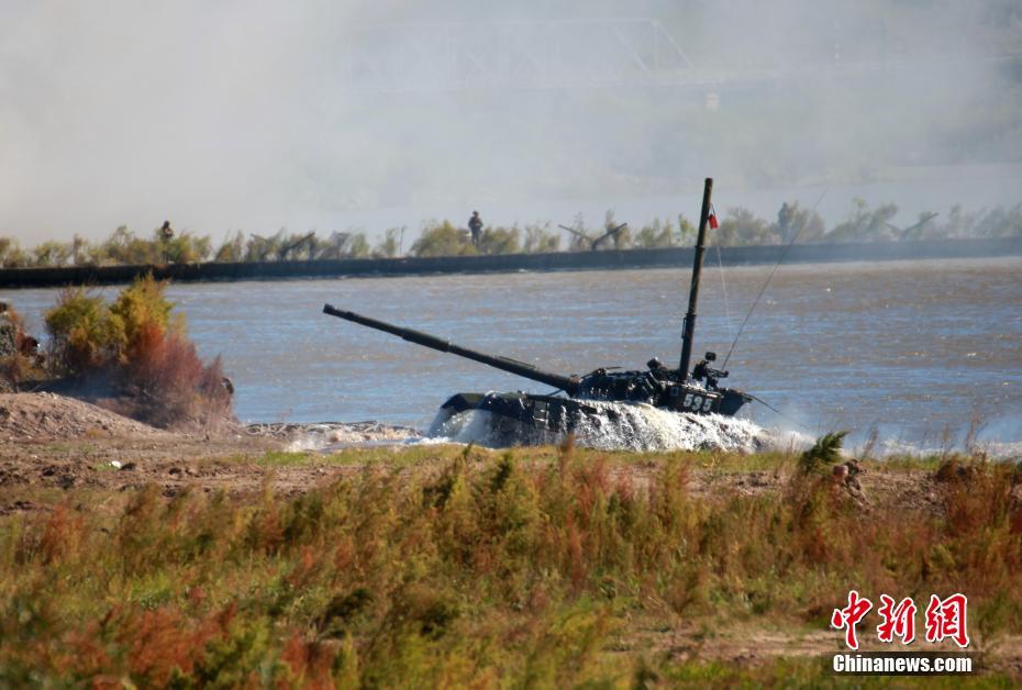 参演坦克渡河。 中新社记者 李纯 摄