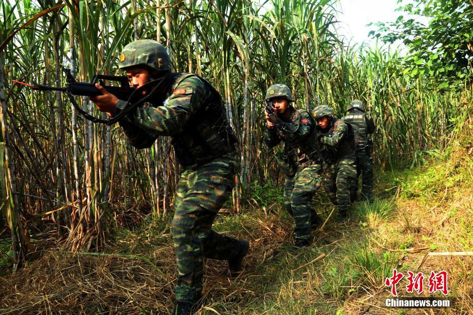 图为特战队员密切协同进行搜索追逃。赵灿 摄