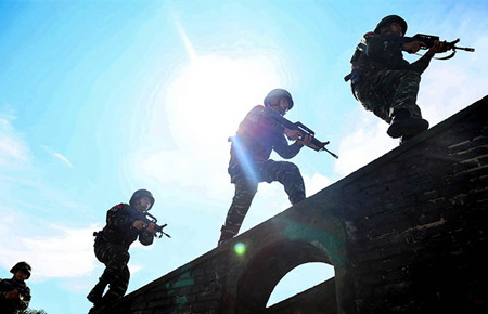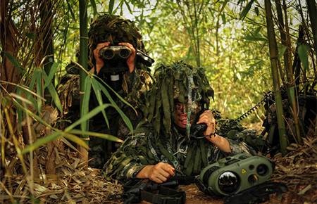 6月2日,广西局部地区地表温度直逼40℃,武警北海支队利用炎热天气,组织特战官兵开展班组战术、400米障碍、刺杀、攀登等10余种课目训练。